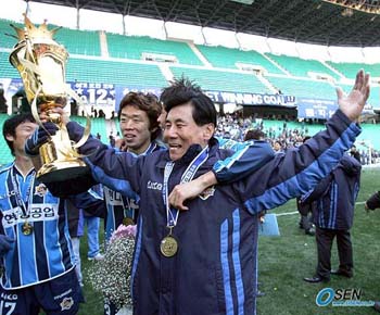 "아시아를 넘어 세계클럽선수권에 도전하고 싶습니다". 울산를 2005년 K리그의 챔피언으로 인도한 김정남(62) 감독이 원대한 포부를 밝혔다. 울산은 4일 울산 문수월드컵경기장에서 열린 인천 유나이티드와의 K리그 챔피언결정전 2차전에서 1-2로 패했지만 1, 2차전 합계 6-3으로 프로축구 정상에 올랐다. 이에 따라 울산은 내년 아시아축구연맹(AFC) 챔피언스리그 28강 조별예선 출전권을 확보했다. 여기서 우승하게 되면 연말에 대륙별 클럽챔피언들이 벌이는 세계클럽선수권(도요타컵)에 출전할 수 있게 된다. 이에 대해 김 감독은 "우리에게는 새로운 도전의 무대라고 본다"면서 "K리그 우승에 만족하지 않고 AFC 챔피언스리그 우승을 넘어 도요타컵까지 나가는 것을 목표다"라고 힘주어 말했다. 이어 "이런 원대한 목표를 이루기 위해 내년에는 새로운 마음가짐, 새로운 각오로 준비할 계획이다"라고 밝혔다. 울산이 9년만에 K리그 정상에 올랐고 현재 팀내 국가대표팀 선수들이 4명이나 포진해 있는 등 아시아 무대는 물론 세계대회에 나가서도 충분히 해볼만하다는 말이다. 우승에 대해서도 감개무량하다고 말을 이었다. "구단과 코칭스태프 선수들이 하나로 똘똘 뭉쳐 어느 때보다 열심히 준비했는 데 오늘 우승의 결과로 나타난 것 같다"며 감회에 젖었다. 김감독은 또 지난 10월2일 부산전에서 0-2로 뒤지고 있었지만 4분동안 3골을 뽑아내 역전승을 거둔 경기와 후기리그 최종전에서 전북에 2골을 먼저내주고도 3골을 터뜨려 뒤집은 경기가 가장 기억에 남는다고 시즌을 되짚었다. "항상 느끼는 것이지만 우승하는것은 참 힘들고 어렵다"며 "할 수 있고 가능성이 있을 때는 오히려 멀어지는 것을 보면 우승이라는 것은 우연히 돌아오는 것 같다는 생각이 들기도 한다"고 털어놓기도 했다. 지난 89년 유공(현 부천) 시절 우승 이후 16년만에 정상에 오른 김 감독은 이날 수훈선수들인 이천수 최성국과 함께 그간의 마음고생을 털어버리듯 힘차게 우승 트로피를 들어올렸다. 울산=국영호 기자 iam905@ [Copyright ⓒ OSEN(www.osen.co.kr) 무단전재 및 재배포 금지]
