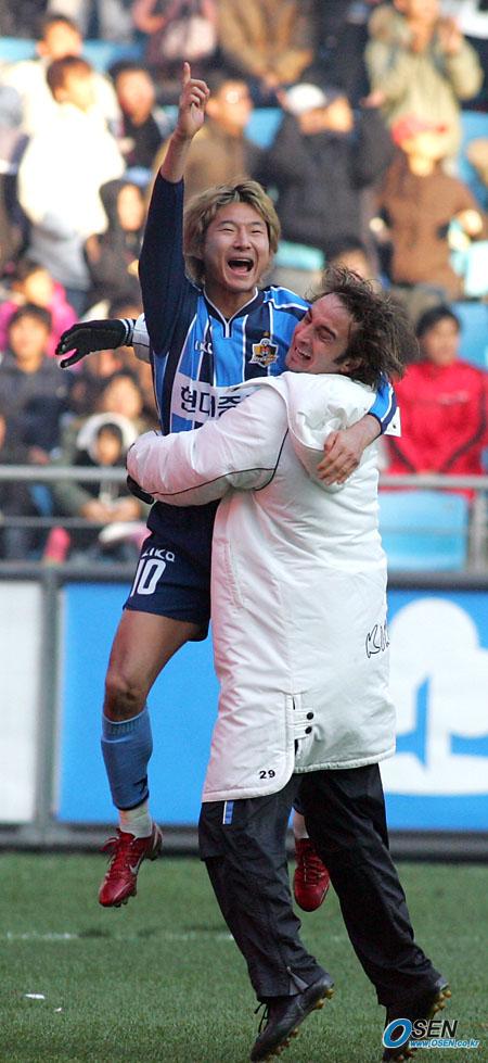 '드디어 우승이다!', 마차도에게 올라타며 기뻐하는 이천수