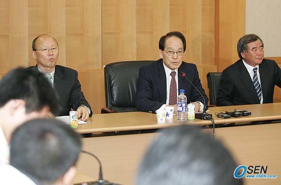 경남 FC가 14번째 프로축구단으로 K-리그에 합류했다. 5일 서울 신문로 축구회관에서 열린 프로축구연맹이사회는 '경남 FC 창단 건'을 만장일치로 승인했다. 박창식 경남 FC 대표이사와 박항서 창단 감독 등이 이사회에 이어 기자뢰견을 갖고 있다. /손용호 기자 spjj@osen.co.kr [Copyright ⓒ OSEN(www.osen.co.kr) 무단전재 및 재배포 금지]