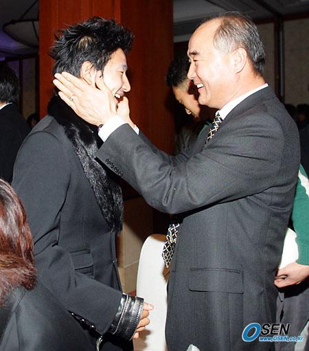 스포츠서울이 (주)국제상사 프로스펙스 협찬, (주)레드원 비더레즈의 후원으로 제정한 제19회 '올해의 프로축구대상' 시상식이 6일 서울 남대문 힐튼 호텔 그랜드볼룸에서 열렸다. 시상식이 끝난 뒤 안종복 인천 FC 단장이 고려대 후배인 울산 현대 이천수의 뺨을 만지며 격려하고 있다. 이천수는 올해의 선수 후보에 올랐으나 수상의 영예는 박주영에게 돌아갔다./주지영 기자 jj0jj0@osen.co.kr [Copyright ⓒ OSEN(www.osen.co.kr) 무단전재 및 재배포 금지]