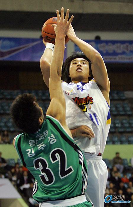 7일 잠실학생체육관에서 벌어진 2005~2005 KCC 프로농구 서울 SK 나이츠와 원주 동부 프로미의 경기서 SK의 방성윤이 동부 김주성의 마크 위로 솟구쳐 슛을 던지고 있다./잠실학생체=주지영 기자 jj0jj0@osen.co.kr [Copyright ⓒ OSEN(www.osen.co.kr) 무단전재 및 재배포 금지]