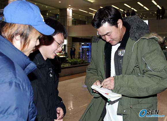 신시내티 레즈의 봉중근이 윈터리그 출전을 마치고 9일 저녁 인천공항을 통해 귀국했다. 봉중근은 내년 3월 열리는 WBC 대회에 보직과 상관없이 태극마크를 달고 뛰고 싶다는 뜻을 밝혔다. 봉중근이 왼손으로 팬에게 사인해 주고 있다./인천공항=손용호 기자 spjj@osen.co.kr [Copyright ⓒ OSEN(www.osen.co.kr) 무단전재 및 재배포 금지]