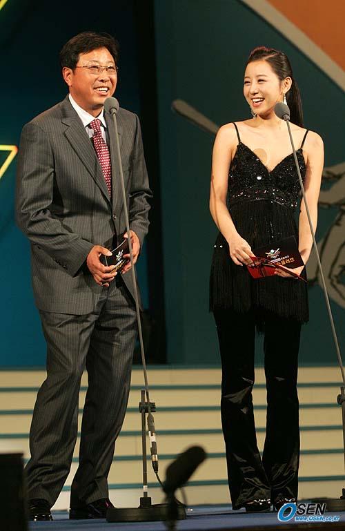 11일 오후 서울 삼성동 코엑스 오디토리움에서 벌어진 삼성PAVV 프로야구 2005 골든글러브 시상식에서 탤런트 최자혜가 서정환 기아 감독에게 남자친구를 소개시켜 달라고 하자 서 감독이 이번에 2루수 골든글러브를 수상하는 사람을 소개시켜 주겠다고 얘기하며 웃고 있다./손용호 기자 spjj@osen.co.kr [Copyright ⓒ OSEN(www.osen.co.kr) 무단전재 및 재배포 금지]