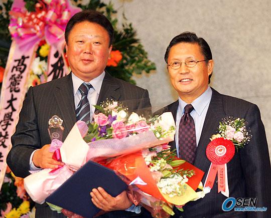 2005 자랑스런 고려대 체육인 시상식이 13일 저녁 서울 삼성동 코엑스 컨벤션 센터에서 열렸다. 지도자상을 수상한 선동렬 삼성 감독이 허광수 고우체육회장과 포즈를 취하고 있다./주지영 기자 jj0jj0@osen.co.kr [Copyright ⓒ 한국 최고의 스포츠 전문 미디어 OSEN(www.osen.co.kr) 무단전재 및 재배포 금지]