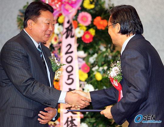 2005 자랑스런 고려대 체육인 시상식이 13일 저녁 서울 삼성동 코엑스 컨벤션 센터에서 열렸다. 선동렬 삼성 감독이 허광수 고우체육회장으로부터 지도자상을 받고 있다./주지영 기자 jj0jj0@osen.co.kr [Copyright ⓒ 한국 최고의 스포츠 전문 미디어 OSEN(www.osen.co.kr) 무단전재 및 재배포 금지]