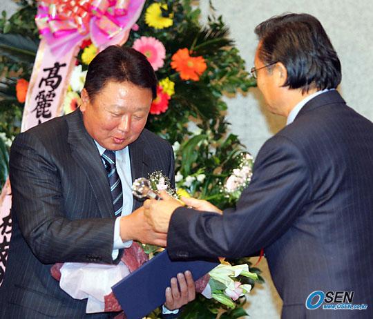 2005 자랑스런 고려대 체육인 시상식이 13일 저녁 서울 삼성동 코엑스 컨벤션 센터에서 열렸다. 선동렬 삼성 감독이 허광수 고우체육회장으로부터 지도자상을 받고 있다./주지영 기자 jj0jj0@osen.co.kr [Copyright ⓒ 한국 최고의 스포츠 전문 미디어 OSEN(www.osen.co.kr) 무단전재 및 재배포 금지]