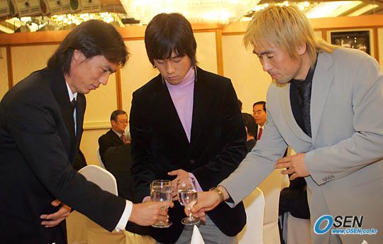 건배하고 있는 홍명보 박주영 김병지