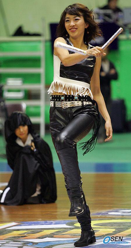 15일 잠실학생체육관에서 벌어진 2005~2006 KCC 프로농구 서울 SK 나이츠와 부산 KTF 매직윙스의 경기에 앞서 치어리더가 쌍절곤을 돌리며 음악에 맞춰 춤을 추고 있다./잠실학생체=주지영 기자 jj0jj0@osen.co.kr [Copyright ⓒ 한국 최고의 스포츠 전문 미디어 OSEN(www.osen.co.kr) 무단전재 및 재배포 금지]