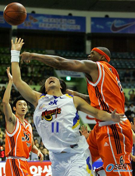 15일 잠실학생체육관에서 벌어진 2005~2006 KCC 프로농구 서울 SK 나이츠와 부산 KTF 매직윙스의 경기서 SK의 방성윤이 골밑슛을 시도하다 KTF의 애런 맥기에게 블록슛을 당하고 있다. 왼쪽 뒤에서 KTF의 황진원이 볼의 향방을 살피고 있다./잠실학생체=주지영 기자 jj0jj0@osen.co.kr [Copyright ⓒ 한국 최고의 스포츠 전문 미디어 OSEN(www.osen.co.kr) 무단전재 및 재배포 금지]