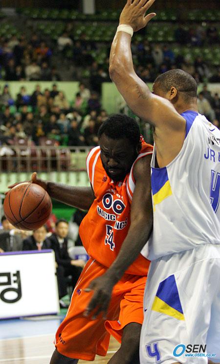 15일 잠실학생체육관에서 벌어진 2005~2006 KCC 프로농구 서울 SK 나이츠와 부산 KTF 매직윙스의 경기서 KTF의 딕슨이 SK의 주니어 버로를 몸으로 밀치며 공격하고 있다./잠실학생체=주지영 기자 jj0jj0@osen.co.kr [Copyright ⓒ 한국 최고의 스포츠 전문 미디어 OSEN(www.osen.co.kr) 무단전재 및 재배포 금지]
