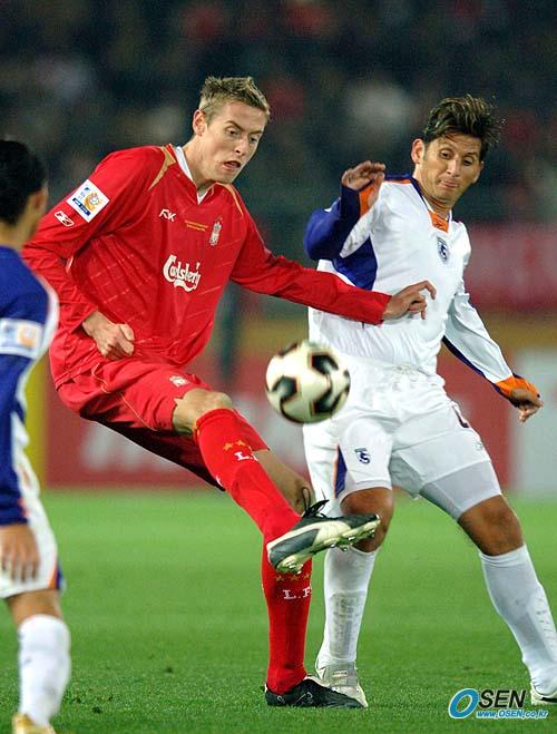 15일 일본 요코하마에서 벌어진 세계클럽선수권대회 준결승서 지난 시즌 유럽축구연맹(UEFA) 챔피언스리그 우승팀인 잉글랜드 리버풀이 북중미 챔피언인 코스타리카의 데포르티보 사프리사를 3-0으로 완파해 결승에 올라 브라질의 상파울루 FC와 정상을 놓고 다투게 됐다. 리버풀의 크라우치가 데포르티보 선수들 사이에서 발로 볼을 컨트롤하고 있다./요코하마=송석린 기자 song@osen.co.kr [Copyright ⓒ 한국 최고의 스포츠 전문 미디어 OSEN(www.osen.co.kr) 무단전재 및 재배포 금지]