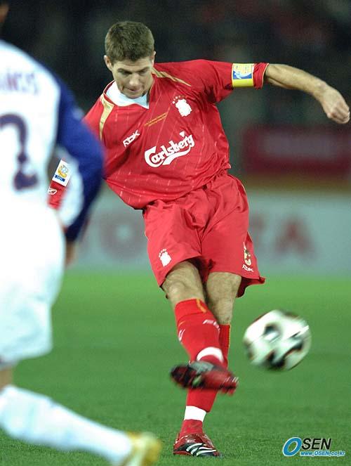 15일 요코하마에서 벌어진 세계클럽선수권대회 준결승서 지난 시즌 유럽축구연맹(UEFA) 챔피언스리그 우승팀인 잉글랜드 리버풀이 북중미 챔피언인 코스타리카의 데포르티보 사프리사를 3-0으로 완파해 결승에 올라 브라질의 상파울루 FC와 정상을 놓고 다투게 됐다. 리버풀의 주장 제라드가 사프리사 문전에서 슈팅을 날리고 있다./요코하마=송석린 기자 song@osen.co.kr [Copyright ⓒ 한국 최고의 스포츠 전문 미디어 OSEN(www.osen.co.kr) 무단전재 및 재배포 금지]