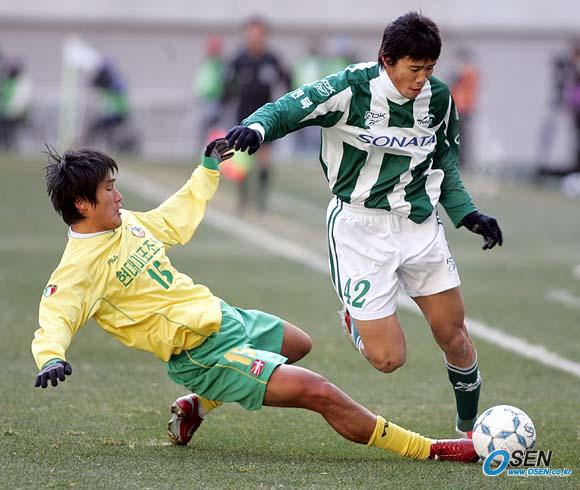 17일 서울 상암 월드컵경기장에서 벌어진 2005 하나은행 FA컵 결승전 전북 현대와 울산 현대미포조선의 경기 전반 전북 조진수의 돌파를 현대미포조선 이재천(왼쪽)이 태클로 저지하고 있다 ./상암=손용호 기자 spjj@osen.co.kr [Copyright ⓒ 한국 최고의 스포츠 전문 미디어 OSEN(www.osen.co.kr) 무단전재 및 재배포 금지]