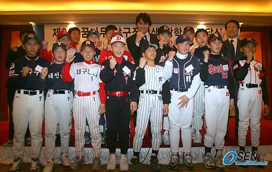 박찬호 장학재단이 17일 오후 서울 소공동 롯데호텔에서 제8회 꿈나무 야구 장학생 장학금 전달식을 가졌다. 박찬호가 어린이들과 파이팅을 외치고 있다./주지영 기자 jj0jj0@osen.co.kr [Copyright ⓒ 한국 최고의 스포츠 전문 미디어 OSEN(www.osen.co.kr) 무단전재 및 재배포 금지]