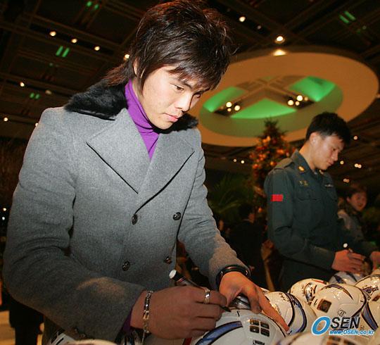 열심히 사인하고 있는 김영광
