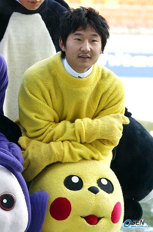 홍명보 장학재단이 주최하는 2005 푸마 자선축구 경기가 18일 오후 수원 월드컵경기장에서 열렸다. 2002년 월드컵 멤버들 중심의 사랑팀과 현 대표 선수 위주의 희망팀으로 나뉘어 벌인 경기에 앞서 피카츄 복장을 한 희망팀의 이천수가 기념사진을 찍고 있다./ 수원=손용호 기자 spjj@osen.co.kr [Copyright ⓒ 한국 최고의 스포츠 전문 미디어 OSEN(www.osen.co.kr) 무단전재 및 재배포 금지]