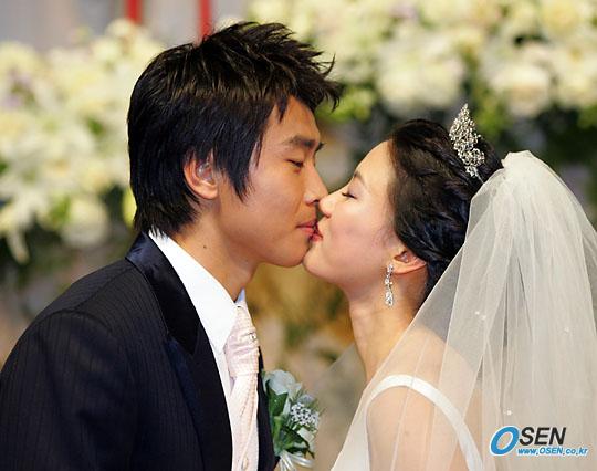 18일 포항 스틸러스의 이동국이 7년간 사귀었던 1997년 미스코리아 하와이 이수진씨와 센트럴시티 밀레니엄홀에서 백년가약을 맺었다. 결혼식은 이날 벌어진 2005 푸마자선축구대회를 마친 동료들도 참석 이들의 앞날을 축복해주었다. 이동국과 부인 이수진씨가 성혼을 축하하는 키스를 하고 있다./센트럴시티=주지영기자jj0jj0@osen.co.kr [Copyright ⓒ 한국 최고의 스포츠 전문 미디어 OSEN(www.osen.co.kr) 무단전재 및 재배포 금지]
