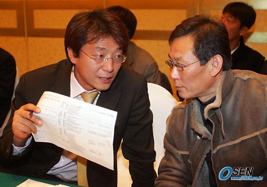2006 K리그 신인 드래프트가 20일 오전 서울 홍은동 그랜드 힐튼 호텔에서 열렸다. 황선홍 전남 코치가 지명과 관련 스태프와 의논하고 있다./주지영 기자 jj0jj0@osen.co.kr [Copyright ⓒ 한국 최고의 스포츠 전문 미디어 OSEN(www.osen.co.kr) 무단전재 및 재배포 금지]