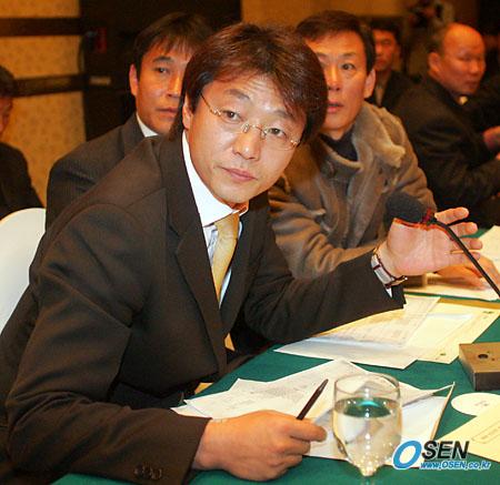 2006 K리그 신인 드래프트가 20일 오전 서울 홍은동 그랜드 힐튼 호텔에서 열렸다. 개인 사정으로 불참한 전남의 허정무 감독 대신 황선홍 코치가 선수를 지명한 뒤 현황판을 쳐다보고 있다./주지영 기자 jj0jj0@osen.co.kr [Copyright ⓒ 한국 최고의 스포츠 전문 미디어 OSEN(www.osen.co.kr) 무단전재 및 재배포 금지]