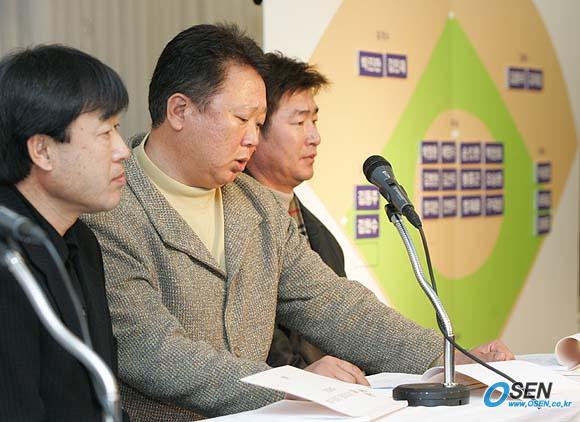 김인식 WBC(월드베이스볼클래식) 대표팀 감독이 20일 오후 서울 청담동 프리마호텔에서 29명의 최종 엔트리를 발표했다. 선동렬 대표팀 코치가 투수 선발과 관련한 기자의 질문에 답하고 있다./손용호 기자 spjj@osen.co.kr [Copyright ⓒ 한국 최고의 스포츠 전문 미디어 OSEN(www.osen.co.kr) 무단전재 및 재배포 금지]