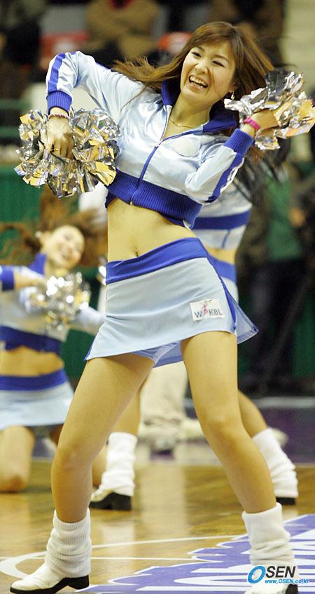 2006 금호아시아나배 여자 프로농구 겨울리그가 20일 장충체육관에서 개막됐다. 두 번째 경기인 우리은행과 국민은행의 경기 도중 치어리더가 신나는 춤을 관중들에게 선사하고 있다./장충체=주지영 기자 jj0jj0@osen.co.kr [Copyright ⓒ 한국 최고의 스포츠 전문 미디어 OSEN(www.osen.co.kr) 무단전재 및 재배포 금지]