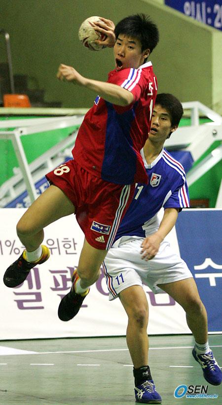 지난 20일 개막된 2005-2006 대한항공배 핸드볼 큰잔치 남자 대학부 1차대회 이틀째 경기가 21일 잠실학생 체육관에세 열렸다. 조선대의 최근호가 원광대의 엄효원을 따돌리고 측면을 돌파, 슛을 날리고 있다. 조선대가 38-35로 승리했다./잠실학생체=주지영 기자 jj0jj0@osen.co.kr [Copyright ⓒ 한국 최고의 스포츠 전문 미디어 OSEN(www.osen.co.kr) 무단전재 및 재배포 금지]