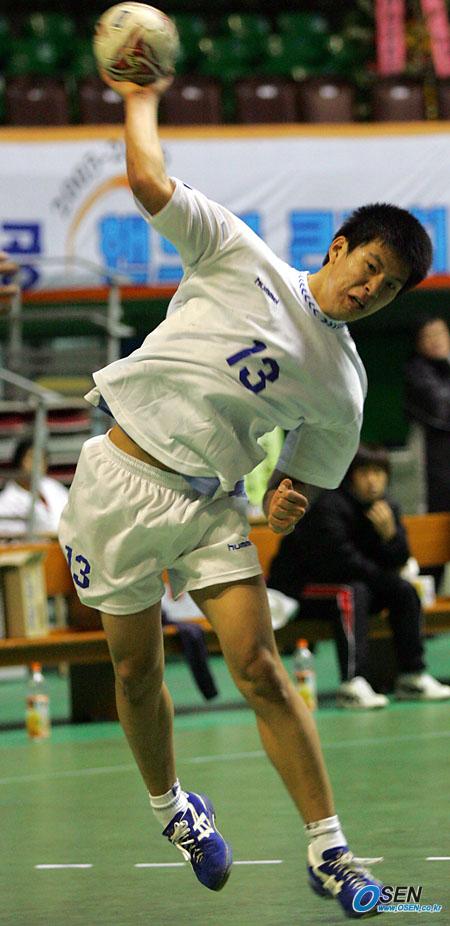 지난 20일 개막된 2005-2006 대한항공배 핸드볼 큰잔치 남자 대학부 1차대회 이틀째 경기가 21일 잠실학생 체육관에서 열렸다. 경희대와 충남대의 경기서 경희대 정민구가 노마크 슛을 날리고 있다. 경희대가 39-26으로 낙승, 2연승으로 한체대와 함께 공동 선두에 나섰다./잠실학생체=주지영 기자 jj0jj0@osen.co.kr [Copyright ⓒ 한국 최고의 스포츠 전문 미디어 OSEN(www.osen.co.kr) 무단전재 및 재배포 금지]