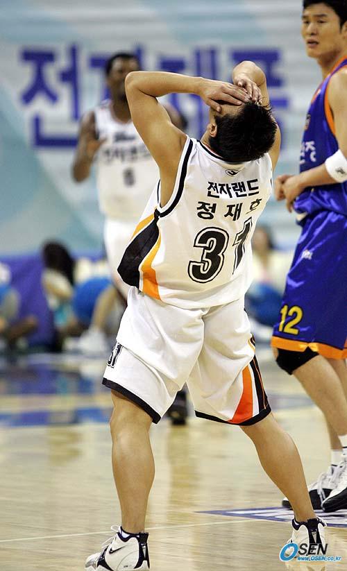 21일 부천체육관에서 벌어진 2005~2006 KCC 프로농구 인천 전자랜드와 안양 KT&G의 경기 1쿼터서 전자랜드 정재호가 속공을 위해 빠르게 던진 패스가 엔드라인 아웃이 되자 아쉬워하고 있다./부천=손용호 기자 spjj@osen.co.kr [Copyright ⓒ 한국 최고의 스포츠 전문 미디어 OSEN(www.osen.co.kr) 무단전재 및 재배포 금지]