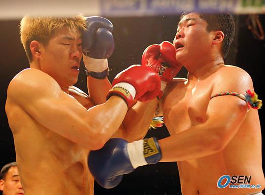 코마 헤비급 그랑프리 대회가 22일 저녁 서울 장충체육관에서 벌어졌다. 8강전 마지막 경기서 이면주(왼쪽)와 문보람이 접근전을 벌이고 있다./장충체=주지영 기자 jj0jj0@0sen.co.kr [Copyright ⓒ 한국 최고의 스포츠 전문 미디어 OSEN(www.osen.co.kr) 무단전재 및 재배포 금지]