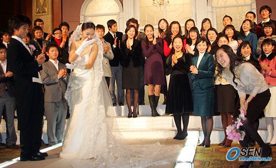 부케를 던지는 최성국의 신부