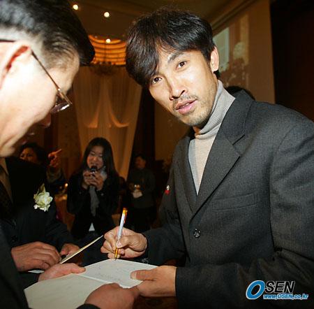 최성국(22, 울산 현대)이 24일 오후 서울 소공동 롯데 호텔에서 곽선혜 씨와 결혼식을 올렸다. 하객으로 참석한 영화배우 유오성이 팬들에게 사인해 주고 있다./주지영 기자 jj0jj0@osen.co.kr [Copyright ⓒ 한국 최고의 스포츠 전문 미디어 OSEN(www.osen.co.kr) 무단전재 및 재배포 금지]