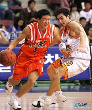 부산 KTF가 크리스마스 이브를 맞아 4연패의 악몽에서 벗어났다. 부산 KTF는 24일 안양실내체육관에서 열린 안양 KT&G와의 2005-2006 KCC 프로농구 24차전 원정경기에서 용병 나이젤 딕슨(20점.17리바운드)의 맹활약 속에 65-54로 승리했다. 지난 13일 오리온스전부터 내리 4경기를 내줬던 KTF는 크리스마스를 앞두고 짜릿한 승리를 거두면서 11승13패를 기록, 공동 7위에 올라섰다. 딕슨과 함께 코트에 나선 애런 맥기(15점.14리바운드)는 35점 31개의 리바운드를 합작했고, 고비마다 3점슛을 집중시킨 황진원은 13점으로 힘을 보탰다. 신기성(7점.5어시스트)은 노련하게 경기 운영으로 승리를 이끌었다. KTF는 전반에는 용병들이 골밑 힘싸움에서 우위를 보였고 후반들어서는 외곽포가 빛났다. KTF는 딕슨과 맥기가 전반에만 37점 가운데 23점, 리바운드는 17개를 잡아내는 등 골밑을 장악한 반면 수비에서는 상대 용병 단테 존스와 허브 래마쟈나를 17점과 4리바운드로 막아내 전반을 7점차로 마치는데 크게 공헌했다. KTF는 후반들어 상대 용병 존스와 래미쟈나에 연속골을 허용해 한때 2점차까지 쫓겼지만 신기성을 시작으로 송영진 황진원(3점슛 3개)의 3점포가 불을 뿜어 골밑 백중세로 허용한 점수를 만회, 결국 11점차 승리를 챙겼다. KT&G의 존스와 래미쟈나는 여러 차례 멋진 덩크쇼를 선보여 크리스마스 이브를 맞아 경기장을 찾은 홈팬들에게 많은 볼거리를 제공했지만 정작 경기 결과에서는 패해 3연패의 늪에 빠졌다. 존스는 야투 성공률이 부진하면서 평균 득점에서 10점이나 못 미친 17점에 그쳤다. 래미쟈나는 19점을 올렸다. 울산 모비스는 선두를 탈환해 홈팬들을 열광시켰다. 원주 동부를 홈으로 불러들인 모비스는 벤자민 핸드로그텐(21점.14리바운드)의 맹활약 속에 68-60으로 승리를 거두고 3연패에서 벗어났다. 15승8패를 기록한 모비스는 동부를 반게임차로 제치고 1위에 올라섰다. 4위 쟁탈전에서는 추승균이 33점을 폭발시킨 전주 KCC가 100-96으로 창원 LG에 승리를 거두고 13승11패로 4위에 올랐다. LG는 반게임차 뒤진 5위로 내려 앉았다. 서울 SK는 주니어 버로(24점) 데이먼 브라운(20점) 방성윤(19점)의 고른 활약으로 대구 오리온스를 81-77로 물리치고 6연승을 내달렸다. SK는 11승13패로 6위로 점프했다. ■24일 프로농구 전적 ▲안양 부산 KTF 65(20-12 17-18 12-14 16-10)54 안양 KT&G ▲울산 원주 동부 60(17-17 15-6 12-23 16-22)68 울산 모비스 ▲대구 서울 SK 81(24-30 21-16 24-15 12-16)77 대구 오리온스 ▲전주 창원 LG 96(28-23 35-22 21-33 12-22)100 전주 KCC 안양=글,국영호 기자 iam905@osen.co.kr 사진, 손용호 기자 spjj@osen.co.kr [Copyright ⓒ 한국 최고의 스포츠 전문 미디어 OSEN(www.osen.co.kr) 무단전재 및 재배포 금지]