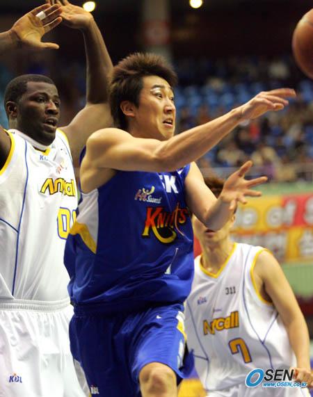 26일 잠실체육관에서 벌어진 2005~2006 KCC 프로농구 삼성 썬더스와 SK 나이츠의 서울 라이벌전에서 SK의 임재현이 삼성 골밑을 파고 드는 척하다 밖으로 볼을 빼며 슛 찬스를 만들고 있다./잠실체=주지영 기자 jj0jj0@osen.co.kr [Copyright ⓒ 한국 최고의 스포츠 전문 미디어 OSEN(www.osen.co.kr) 무단전재 및 재배포 금지]