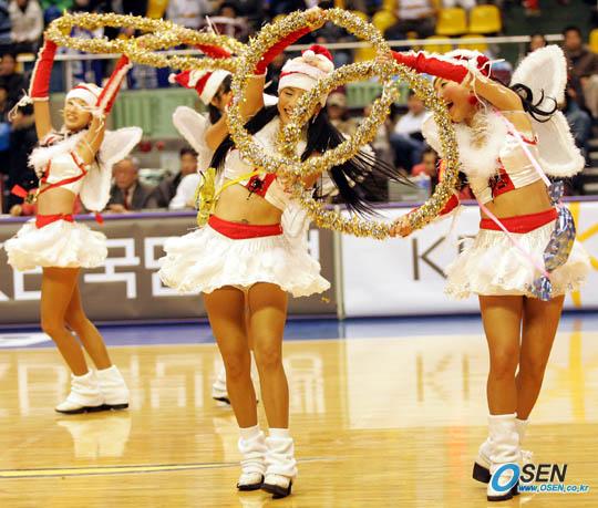 26일 잠실체육관에서 벌어진 2005~2006 KCC 프로농구 삼성 썬더스와 SK 나이츠의 서울 라이벌전에서 치어리더들이 날개가 달린 산타클로스 컨셉의 복장으로 신나는 율동을 선사하고 있다./잠실체=주지영 기자 jj0jj0@osen.co.kr [Copyright ⓒ 한국 최고의 스포츠 전문 미디어 OSEN(www.osen.co.kr) 무단전재 및 재배포 금지]
