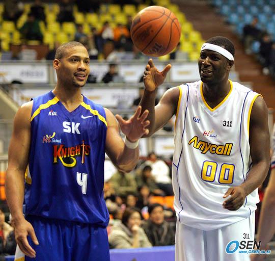 26일 잠실체육관에서 벌어진 2005~2006 KCC 프로농구 삼성 썬더스와 SK 나이츠의 서울 라이벌전에서 자유투가 선언돼 경기가 끊기자 삼성의 올루미데 오예데지(오른쪽)과 SK의 주니어 버로가 서로 공을 받으려 하며웃고 있다./잠실체=주지영 기자 jj0jj0@osen.co.kr [Copyright ⓒ 한국 최고의 스포츠 전문 미디어 OSEN(www.osen.co.kr) 무단전재 및 재배포 금지]