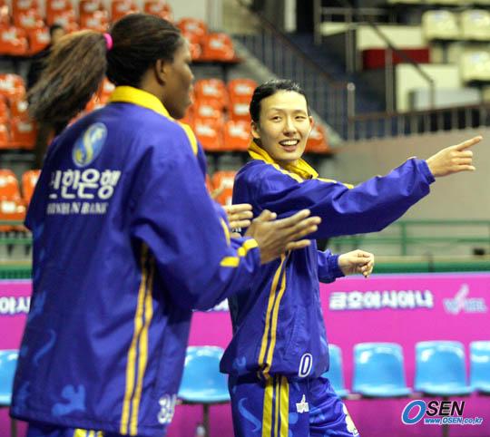 27일 서울 장충체육관서 벌어진 2006 금호아시아나배 여자 프로농구 겨울리그 신한은행-신세계전서 70-51로 낙승을 거둔 신한은행의 전주원이 맥윌리엄스에게 손짓을 써가며 말하고 있다./장충체=주지영 기자 jj0jj0@osen.co.kr [Copyright ⓒ 한국 최고의 스포츠 전문 미디어 OSEN(www.osen.co.kr) 무단전재 및 재배포 금지]