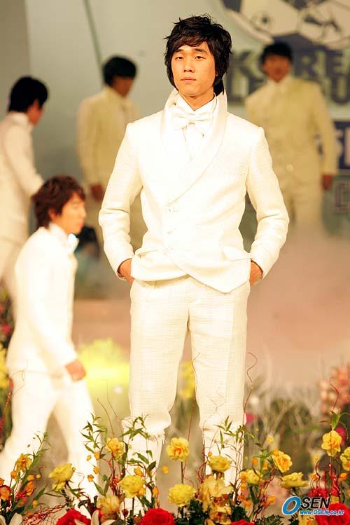 2005 삼성 하우젠 K리그 대상 시상식이 28일 오후 서울 홍은동 그랜드 힐튼호델 컨벤션룸에서 열렸다.본격적인 시상식이 열리기 전 앙드레 김의 옷을 입은 선수들과 모델이 패션쇼를 가졌다. 박주영이 멋진 포즈로 객석을 쳐다보고 있다./손용호 기자 spjj@osen.co.lkr [Copyright ⓒ 한국 최고의 스포츠 전문 미디어 OSEN(www.osen.co.kr) 무단전재 및 재배포 금지]