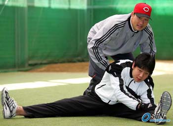 "가끔 말이 잘 안 통하죠, 서로". 3년 선후배인 봉중근(25.신시내티)과 유제국(22.시카고 컵스)은 봉중근이 귀국한 이 달 초부터 유제국의 모교인 서울 덕수정보고에서 함께 개인 훈련을 하고 있다. 에이전트가 이치훈 씨로 같은 둘은 봉중근이 모교인 신일고에서 훈련 장소를 옮겨오면서 한데 뭉쳤다. 28일 유제국과 캐치볼과 스트레칭 등 훈련을 함께 공개한 봉중근은 "어린 나이(만 17살이던 1997년말)에 미국으로 건너갔는데 메이저리그 진출 시기는 언제가 적절한가"는 질문을 받고는 "아무래도 영어가 중요한 만큼 한 해라도 어릴 때 가서 영어를 익히고 20살부터 본격적으로 야구를 하는 게 좋을 것 같다"고 답했다. 봉중근은 그러면서 "제국이가 나보다 3살 어린데 영어를 훨씬 잘 한다"고 후배를 추켜세웠다. 선배의 칭찬에 빙긋이 미소 짓던 유제국은 "중근이 형은 문법 위주로 공부를 많이 한 반면 난 팀 동료들에게 스피킹 위주로 배워 영어가 많이 다르다"며 "내가 흑인들에게 발음을 배워 둘이 말이 안 통할 때가 있다"고 말해 폭소를 자아냈다. 지난해 3월 말 신시내티로 트레이드될 때까지 6년을 넘게 애틀랜타에서 뛴 봉중근은 그렉 매덕스처럼 점잖은 '젠틀맨' 스타일이다. 반면 유제국은 소문난 '터프가이'로 영어도 거친 '서바이벌 잉글리시'를 익혔다. 성격은 피칭 스타일과도 무관치 않다. 봉중근은 얼마 전 WBC 대표팀 선발을 위해 만난 김인식 감독이 "체격은 큰데 너무 소심하게 던진다. 좀더 와일드하게 던지면 타자들에게 더 위협적이지 않겠냐"는 말을 들었다. 반면 유제국은 "올해 스피드를 3~4마일 낮춰서 제구력이 좋아졌지만 내년 봄 스프링캠프에선 강속구를 뿌려서 구단에 강속구 투수로 나를 알리고 싶다"고 말했다. 전혀 다른 스타일의 두 선후배지만 내년 시즌 목표는 하나, 메이저리그 입성이다. 이종민 기자 mini@osen.co.kr 봉중근(위)이 유제국의 스트레칭을 돕고 있다./주지영 기자 jj0jj0@osen.co.kr [Copyright ⓒ 한국 최고의 스포츠 전문 미디어 OSEN(www.osen.co.kr) 무단전재 및 재배포 금지]