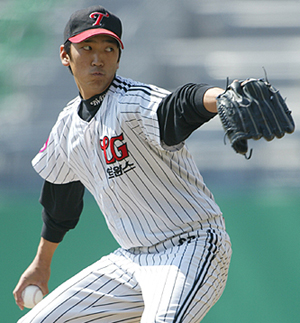 "용택이형 이제 물러나시죠". LG 트윈스의 우완 기대주 투수인 심수창(24)이 잘생긴 얼굴로 팬들의 눈도장을 찍고 있다. 심수창은 LG 트윈스 구단이 공식홈페이지에서 실시하고 있는 '꽃미남 설문조사'에서 선배 박용택과 막상막하의 경쟁을 펼쳐 눈길을 끌고 있다. LG 구단이 정한 설문 제목인 ''쿨가이' 박용택 선수가 결혼을 하면서 내년 시즌에는 더욱 안정된 플레이를 펼칠 것을 기대해 보는데요, LG선수들 중 가장 미남은 누구라고 생각하시나요?'에 29일 오전 10시 현재 226명의 투표 가운데 심수창은 60표를 획득, 박용택보다 1표가 적은 2위를 마크하고 있다. 설문에 나온 후보는 심수창 박용택을 비롯해 최원호 이병규 김광삼 등 LG 구단이 자랑하는 미남 스타들이 총출동했다. 박용택 심수창에 이어 3위는 얼마 전 공개 구혼 TV프로그램에도 나왔던 우완 투수 김광삼(47표)이고 4위는 우완 에이스 최원호(32표) 그 뒤를 이병규(26표)가 이었다. 심수창은 5명 후보 중에서 가장 이름이 덜 알려진 선수. 하지만 LG 팬들은 심수창이 최근 결혼한 박용택의 뒤를 이을 'LG의 꽃미남 스타'로 인정하고 있는 셈이다. 심수창은 아직 실력면에서는 '스타'로 활약을 못하고 있지만 내년 시즌 선발투수 후보로 기대를 모으고 있는 선수이다. 프로 2년차로 올해 32이닝을 던져 1패 1홀드에 방어율 4.22를 마크하며 성장 가능성을 엿보였다. 시즌 후에 쉬지 않고 훈련을 쌓으며 최계훈 신임 투수코치의 지도로 기술 업그레이드에 한창이다. 배명고-한양대를 거친 심수창은 2000년 신인 2차 11순위로 LG에 지명돼 2004년 계약금 2억 1000만 원을 받고 입단했다. 140km 중반대의 직구와 체인지업, 슬라이더를 갖춘 그는 2003년 아테네 올림픽 예선 드림팀에 아마추어로서는 유일하게 선발됐다가 막판에 조웅천으로 교체되는 등 아마시절 최고 유망주였다. 아버지 심태석 씨는 아마추어 심판으로 활동하는 등 '야구인 가족'이다. 팬들로부터 LG의 차세대 미남스타로 인정받고 있는 심수창이 내년 시즌 실력도 갖춘 '꽃미남 스타'가 되기리를 기대해본다. 박선양 기자 sun@osen.co.kr LG 트윈스 제공 [Copyright ⓒ 한국 최고의 스포츠 전문 미디어 OSEN(www.osen.co.kr) 무단전재 및 재배포 금지]