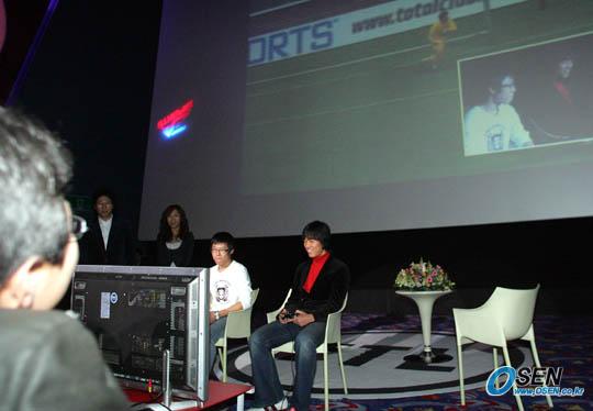 박주영이 29일 오후 서울 삼성동 코엑스 TTL 씨네마 존에서 'FIFA 06' 게임을 출시한 EA코리아 초청 팬 사인회를 가진 뒤 매가박스 영화관에서 개그맨 지석진 정선희와 토크쇼를 가졌다. 박주영이 팬과 함께 축구게임을 벌이고 있다./주지영 기자 jj0jj0@osen.co.kr [Copyright ⓒ 한국 최고의 스포츠 전문 미디어 OSEN(www.osen.co.kr) 무단전재 및 재배포 금지]