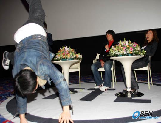 박주영이 29일 오후 서울 삼성동 코엑스 TTL 씨네마 존에서 'FIFA 06' 게임을 출시한 EA코리아 초청 팬 사인회를 가진 뒤 메가박스 영화관에서 개그맨 지석진 정선희와 함께 토크쇼를 가졌다. 한 팬이 박주영에게 골 세리머니 아이디어라며 동작을 취하고 있다. /주지영 기자 jj0jj0@osen.co.kr [Copyright ⓒ 한국 최고의 스포츠 전문 미디어 OSEN(www.osen.co.kr) 무단전재 및 재배포 금지]