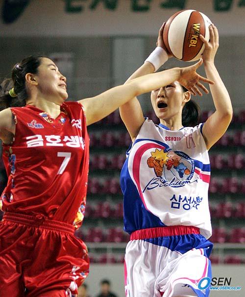 30일 용인체육관에서 벌어진 2006 금호아시아나배 여자 프로농구 겨울리그 용인 삼성생명과 구리 금호생명의 경기서 삼성생명이 70-65로 역전승했다. 2쿼터서 삼성생명의 박정은(오른쪽)이 금호생명 김경희의 블로킹을 피하며 러닝슛을 시도하고 있다./용인=손용호 기자 spjj@osen.co. [Copyright ⓒ 한국 최고의 스포츠 전문 미디어 OSEN(www.osen.co.kr) 무단전재 및 재배포 금지]