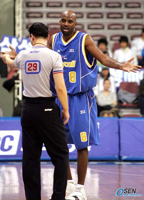 31일 안양체육관에서 벌어진 20005~2006 KCC 프로농구 안양 KT&G와 서울 삼성의 경기서 삼성이 96-89로 승리했다. 3쿼터 삼성의 네이트 존슨이 두 번째 테크니컬 파울을 범해 심판이 퇴장을 명령하자 존슨이 안타까운 표정으로 항변하고 있다./안양=손용호 기자 spjj@osen.co.kr [Copyright ⓒ 한국 최고의 스포츠 전문 미디어 OSEN(www.osen.co.kr) 무단전재 및 재배포 금지]