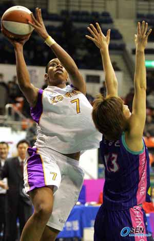 천안 국민은행이 1라운드를 5전 전승으로 마감하며 단독 선두를 굳게 지켰다. 국민은행은 2일 서울 장충체육관에서 열린 2006 금호아시아나배 여자프로농구 겨울리그에서 티나 톰슨(34득점, 3점슛 3개, 13리바운드), 정선민(20득점, 3점슛 2개, 6리바운드, 6어시스트), 김분좌(16득점, 3점슛 4개, 7리바운드) 등의 외곽슛을 앞세워 광주 신세계를 84-69로 완파했다. 이로써 1라운드 5경기를 모두 승리한 국민은행은 2위 안산 신한은행에 1게임차 앞선 단독 선두를 굳게 지켰고 신세계는 2승3패가 되며 용인 삼성생명에 공동 3위를 허용했다. 12-13으로 뒤지고 있던 1쿼터 4분47초부터 정선민의 연속 4득점과 김지현(9득점)의 3점슛으로 19-13으로 순식간에 앞서나간 국민은행은 7분51초에 터진 김분좌의 3점슛으로 29-17로 점수차를 벌려 초반에 승부를 결정짓는 듯 했다. 그러나 겨울리그 최하위 후보에서 다크호스로 떠오른 신세계도 만만치 않았다. 신세계는 17-29로 뒤지고 있던 1쿼터 8분13초부터 정진경(6득점), 방지윤(4득점)의 연속 2점슛과 '겁없는 신인' 김정은(14득점, 7리바운드)의 2점슛에 이은 보너스 자유투 성공으로 24-29까지 따라붙으며 1쿼터를 끝냈다. 하지만 올시즌 일약 우승후보로 떠오른 국민은행은 더이상 신세계의 추격을 허용하지 않았다. 34-28로 앞서던 2쿼터 3분37초에 톰슨, 정선민이 연속 6득점을 합작하며 40-28로 점수차를 벌린 국민은행은 42-32로 앞선 상황에서 톰슨과 김지현의 연속 2점슛으로 1, 2쿼터 전반을 46-32로 마치면서 사실상 승부를 결정지었다. 국민은행은 후반 들어서도 주전 전원의 고른 활약으로 10점차 이상을 유지했고 경기종료 4분47초에는 처음으로 20점차까지 벌어지면서 국민은행의 싱거운 승리로 경기가 끝났다. 신세계는 김정은과 용병 알라나 모니크 비어드(30득점, 10리바운드)만이 두자릿수 득점을 올렸을 뿐 다른 선수들의 득점포가 침묵, 3패째를 당했다. ■ 2일 전적 ▲ 장충 천안 국민은행 84 (29-24 17-8 14-15 24-22) 69 광주 신세계 장충체=글, 박상현 기자 tankpark@osen.co.kr 사진, 주지영 기자 jj0jj0@osen.co.kr [Copyright ⓒ 한국 최고의 스포츠 전문 미디어 OSEN(www.osen.co.kr) 무단전재 및 재배포 금지]
