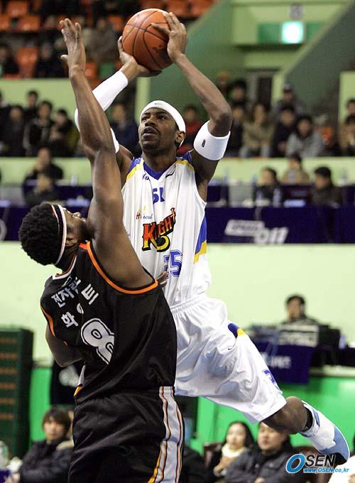 4일 잠실학생체육관에서 벌어진 2005~2006 KCC 프로농구 서울 SK와 인천 전자랜드의 경기 1쿼터서 SK의 데이먼 브라운이 전자랜드의 앨버트 화이트를 앞에 놓고 슛을 던지고 있다./잠실학생체=손용호 기자spjj@osen.co.kr [Copyright ⓒ 한국 최고의 스포츠 전문 미디어 OSEN(www.osen.co.kr) 무단전재 및 재배포 금지]
