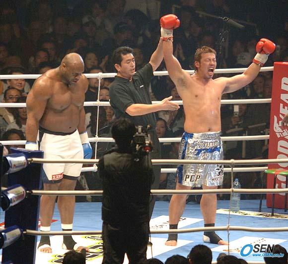 2005년을 마무리하는 K-1 다이너마이트 대회가 12월 31일 오사카돔에서 열렸다. 6번째 경기로 벌어진 경기서 밥 샙은 무사시를 압박하며 훌륭한 경기를 펼쳤지만 2라운드에서의 반칙으로 인해 아쉽게 패배를 기록했고 무사시는 야수에게 승리하며 일본 에이스의 자존심을 세웠다. 무사시의 손이 올라가자 밥 샙이 고개를 숙이고 아쉬워 하고 있다./오사카=송석린 기자 song@osen.co.kr [Copyright ⓒ 한국 최고의 스포츠 전문 미디어 OSEN(www.osen.co.kr) 무단전재 및 재배포 금지]