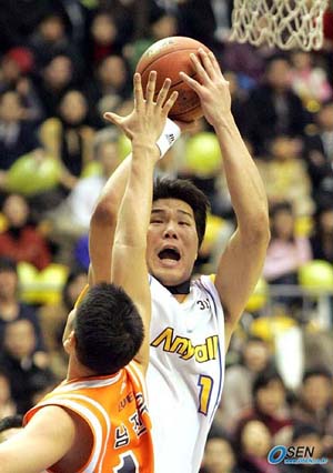 서울 삼성이 서장훈과 네이트 존슨의 활약을 앞세워 지긋지긋했던 '부산 KTF 징크스'에서 벗어나고 시즌 첫 단독 선두로 올라섰다. 삼성은 5일 잠실실내체육관에서 열린 2005~2006 KCC 프로농구 정규리그 홈경기에서 서장훈(25득점, 3점슛 2개, 7리바운드, 4어시스트), 존슨(26득점, 3점슛 2개, 4리바운드), 올루미데 오예데지(18득점, 14리바운드)의 활약을 앞세워 KTF에 95-83으로 완승을 거뒀다. 올시즌 KTF를 상대로 3연패를 당한 끝에 귀중한 첫 승을 올린 삼성은 18승 10패가 되며 원주 동부와 울산 모비스를 반경기차로 따돌리고 시즌 첫 단독 선두로 올라섰다. 삼성이 단독 선두로 올라선 것은 지난 2003년 11월 6일 이후 2년 2개월만이다. 1쿼터부터 존슨과 서장훈의 맹활약은 빛을 발했다. 4-3으로 근소하게 앞서 있던 2분38초부터 서장훈의 어시스트을 받은 존슨의 연속 2점슛으로 10-3까지 앞서나가며 승기를 잡기 시작한 삼성은 결국 1, 2쿼터 전반을 43-36, 7점차로 앞선채 마쳤다. 3쿼터부터 서장훈을 앞세운 삼성의 공격력이 더욱 빛을 발하자 승부의 추가 급격하게 기울기 시작했다. 45-38이던 1분 2초에 터진 강혁(10득점, 3점슛 2개, 5어시스트)의 3점슛으로 처음으로 10점차로 앞서나간 삼성은 63-52, 11점차로 앞서 있던 8분 29초에 나온 서장훈의 3점슛과 2점슛, 오예데지의 2점슛으로 점수를 무려 18점차로 벌렸고 70-54로 앞서있던 상황에서는 서장훈의 버저비터 2점슛까지 나왔다. 삼성은 4쿼터 시작하자마자 존슨의 3점슛이 터지면서 75-54, 21점이나 차이를 벌리면서 사실상 승부에 마침표를 찍었다. 이날 KTF는 애런 맥기(22득점, 6리바운드)와 조상현(13득점), 이홍수(12득점, 3점슛 3개, 4어시스트) 등이 비교적 제몫을 해줬을 뿐 나이젤 딕슨(9득점, 18리바운드) 등 나머지 선수들의 득점이 뒷받침되지 못해 올시즌 상대전적 3연승으로 절대적인 우위를 자랑하던 삼성에 12점차 패배를 당하고 말았다. ■ 5일 전적 ▲ 잠실체 서울 삼성 95(23-16 20-20 29-18 23-29) 83 부산 KTF 잠실체=글, 박상현 기자 tankpark@osen.co.kr 사진, 손용호 기자 spjj@osen.co.kr [Copyright ⓒ 한국 최고의 스포츠 전문 미디어 OSEN(www.osen.co.kr) 무단전재 및 재배포 금지]