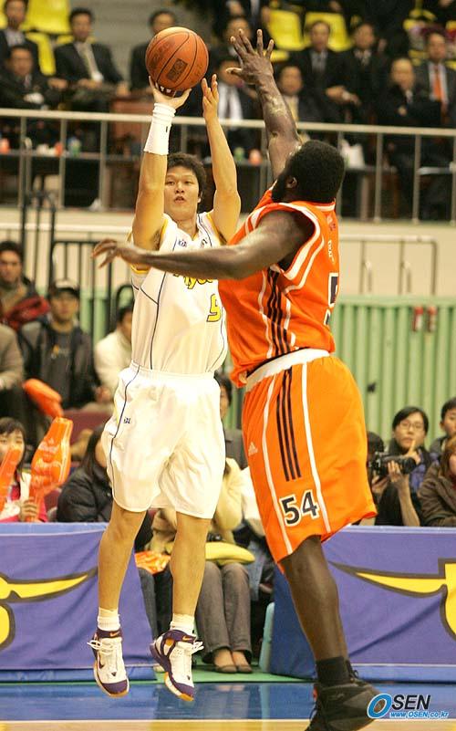 5일 잠실체육관에서 벌어진 2005~2006 KCC 프로농구 서울 삼성과 부산 KTF의 경기 4쿼터서 삼성의 장신(198cm) 슈터 이규섭이 KTF 나이젤 딕슨의 블로킹에 앞서 3점슛을 쏘고 있다./잠실체=손용호 기자spjj@osen.co.kr [Copyright ⓒ 한국 최고의 스포츠 전문 미디어 OSEN(www.osen.co.kr) 무단전재 및 재배포 금지]