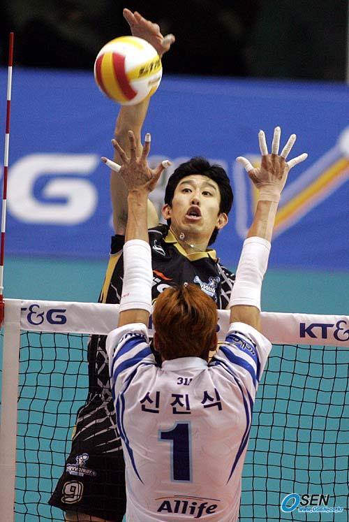 8일 대전 충무체육관에서 벌어진 KT&G 2005~2006 V리그 대전 삼성화재와 천안 현대캐피탈의 경기서 현대캐피탈이 3-0으로 완승, 11연승을 이어갔다. 2세트서 현대캐피탈의 후인정이 연타 공격으로 삼성화재 신진식의 블로킹을 피하고 있다./대전=손용호 기자 spjj@osen.co.kr [Copyright ⓒ 한국 최고의 스포츠 전문 미디어 OSEN(www.osen.co.kr) 무단전재 및 재배포 금지]