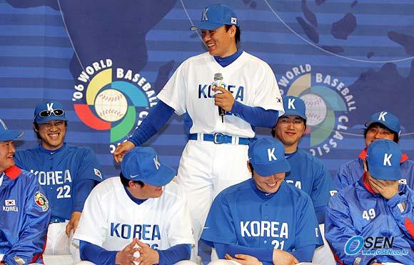 한국야구위원회는 9일 오후 서울 잠실 롯데월드호텔서 오는 3월 일본 도쿄돔에서 벌어지는 WBC 1라운드에 출전할 한국대표팀 오리엔테이션 및 미디어데이 행사를 가졌다. 이승엽이 소감을 얘기할 때 옆에 앉아있던 홍성흔이 너스레를 떨자 말을 못하며 웃고 있다./손용호 기자 spjj@osen.co.kr [Copyright ⓒ 한국 최고의 스포츠 전문 미디어 OSEN(www.osen.co.kr) 무단전재 및 재배포 금지]